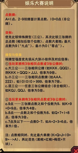 不同的牌是三张牌相加和的个位数谁大,谁赢。