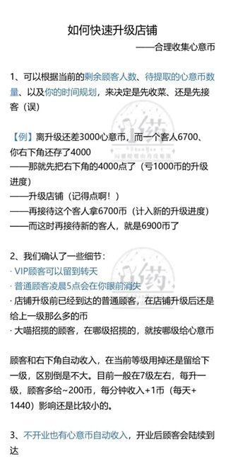 · 可以根据当前的剩余顾客人数、待提取的心意币数量、以及你的时间规划,来决定是先收菜、还是先接客(误)