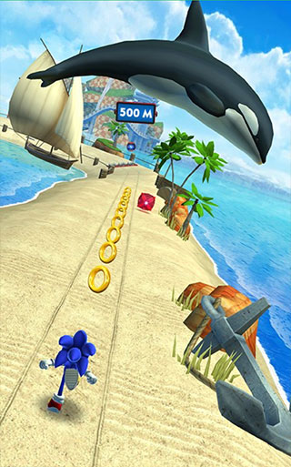 第一,无需等待一次操作完毕之后再进行第二次。这是什么意思呢?很简单,例如当你向上跳跃躲避障碍时,突然发现它后面竟藏着一只金螃蟹,此时需要果断地向下划动,立刻打断跳跃状态,索尼克会猛地砸向地面进入翻滚状态,效果看上会非常酷。