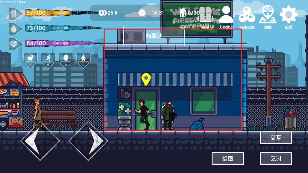 (2)乞讨:与路人进行互动。