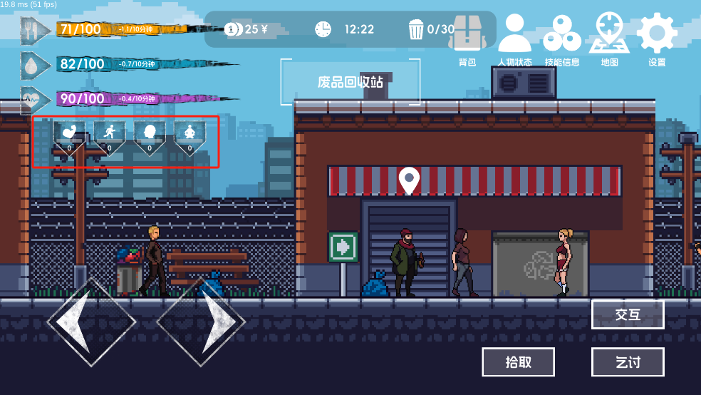 3、流浪者2游戏下载中有300多种特性可供玩家发掘,它们会对你的捡破烂、捡垃圾、讨饭、干活、偷东西的能力产生一定的影响,还能让你更好地活下去。