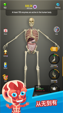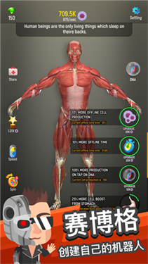 3.核心循环是通过点击或自动放置来积累细胞,细胞是构建人体所有部位的基础资源。