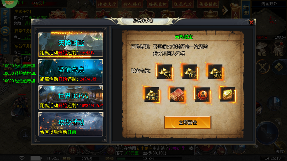 活动地图每120分钟刷新6只世界BOSS不限次数,永久开放