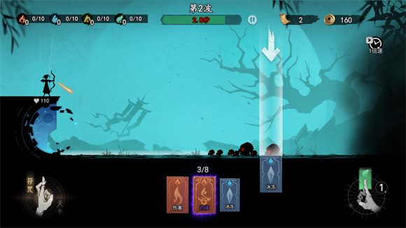 2、进入关卡后角色会自动攻击出现的敌人,怪物会陆续出现来攻击你的基地。
