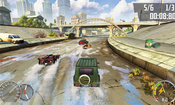 3. 刺激赛道:游戏包含超过70条跑道,这些赛道基于真实地点设计,玩家将面临各种挑战,如在美国荒野中竞速时被龙卷风包围,在喜马拉雅山脉躲避雪崩,还可以利用坡道展现酷炫的特技。