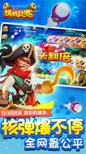 2. 千炮对战:开启最爽快的千炮多人对战模式,最高支持千炮齐发,真人联网竞技,看谁能率先捕获鱼王。