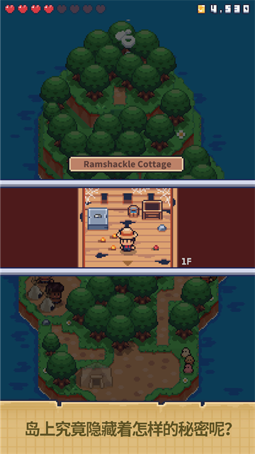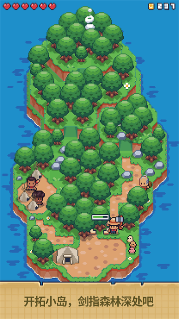 3、升级你的武器和道具,增强体力(红心)。这样,你才能更好地应对森林中的骷髅头,它们会偷走你的材料。