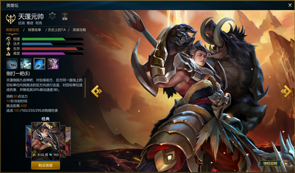 2、英雄选择思路——以天蓬元帅为例:针对新手玩家(如黄金钻石段位),推荐选择天蓬元帅。其优势在于控制技能多,能与射手形成强力配合。使用1技能远程控制目标后,可接4技能拉近并眩晕,配合射手输出极易压制对方上单。尽管他前期生存与近身能力较弱,但在射手协作下,能有效限制敌方行动,并在前期团战中发挥重要作用。