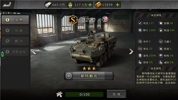 1. 坦克系统:提升等级后,可使用钞票升级坦克等级与技能。达到特定等级解锁改造点,合成配件升级坦克品质。收集图纸升星提升数值,集齐相关坦克解锁羁绊,实现集体提升。