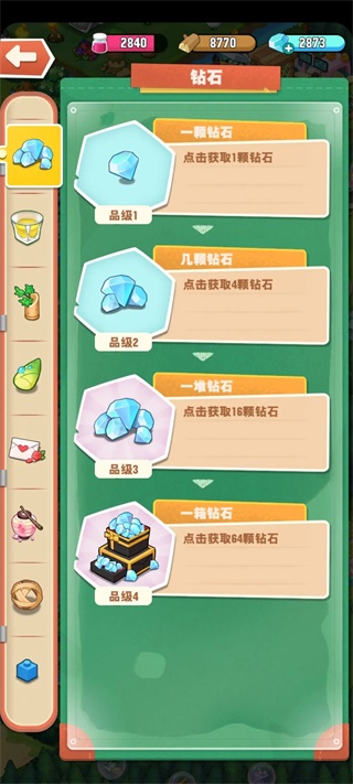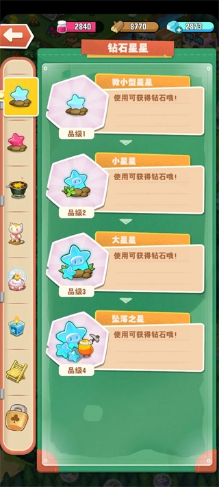 也可以白嫖,天上飞的果冻鸡偶尔会带蓝星过来,蓝星出钻石,五合到最高级,第四级基本上是出两堆钻石,还有就是活动更新的时候会给一颗微小型星星以及做活跃任务会给蓝星,蓝星又叫钻石星星。