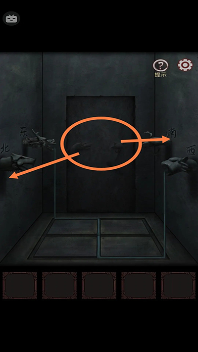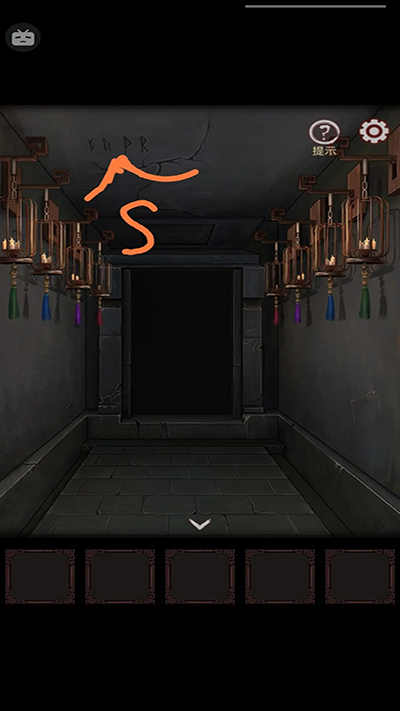 2、一直往里走到墓室婚礼,右边墙上有六个抽屉,点击一个,下一个就会打开,记下顺序,因为第二个固定,所以以此为基准;