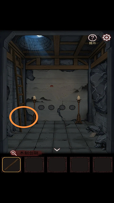 9、进左墓室,用火柴点蜡烛,墙上出现线索,下面四个钟按线索转动,打开头顶的盖子,马上就能出去了;