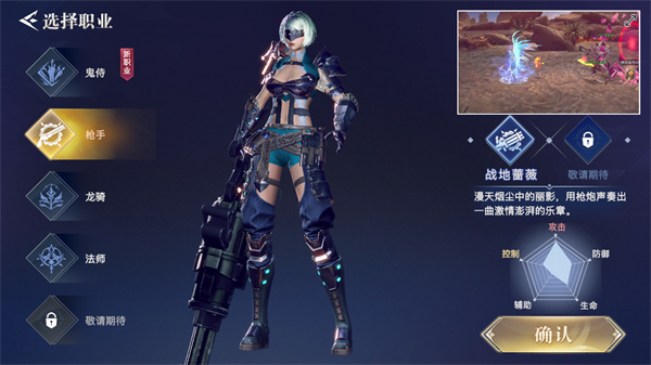 特色:武器手炮、重炮,远程攻击,未来风技能(导弹、电磁炮、火焰喷射器应有尽有),体术
