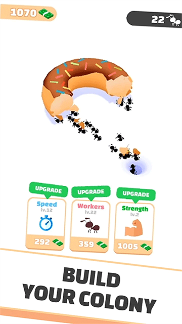 2. 蚂蚁升级:搬运食物可解锁新蚂蚁同伴,提升其力量、速度等属性。