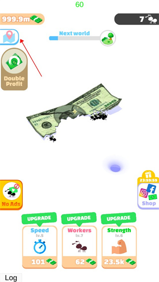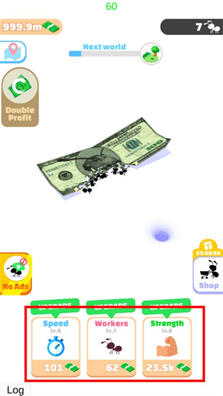 2. 获得金币:为蚁群提供食物,吞噬一切可获得金币,金币可用于任意项目。