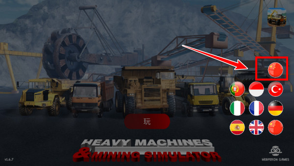 1、游戏自带官方中文汉化,进入之后点击主界面的国旗图标即可切换中文