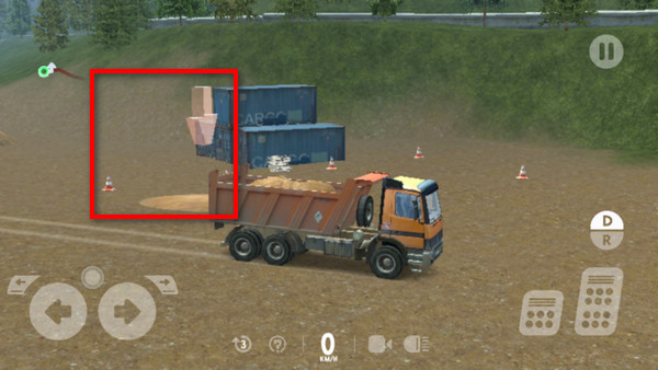 6、一顿操作之后,成功将卡车倒车在指定位置,然后会有挖出来的泥土装进来,让我们运到别的地方
