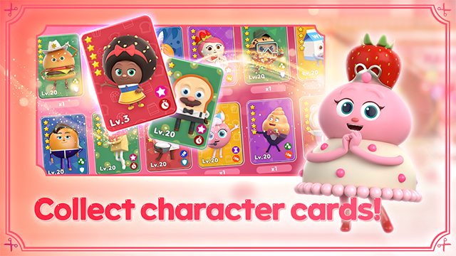 通过收集角色卡提升等级,遇见“蛋糕公主”还可触发随机奖励,加速游戏进程。