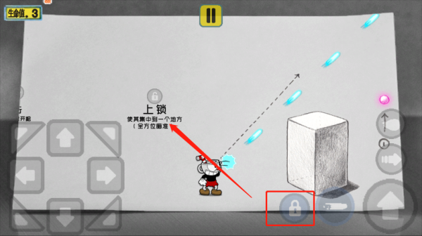 2、按住右侧上键即可进行跳跃