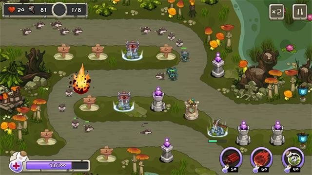 4. 提供12种基础防御塔和5种能增添战略性的特殊防御塔。