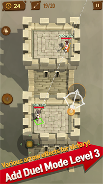 4.通过拖拽屏幕调整弓箭的角度和力度,松手发射,考验玩家的预判能力。