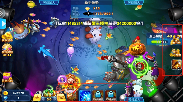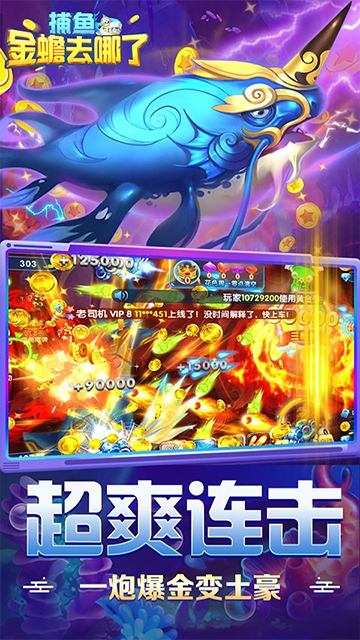 4、支持多人实时联网对战,万人在线同屏捕鱼!