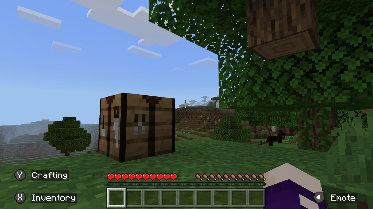 将所需的材料置于终端中,在本例中所需的材料为木头方块。选择“合成”选项,然后好好表扬一下自己吧。您刚刚在 Minecraft 中完成了合成!现在您有四块木板,正好够我们合成一个工作台了。