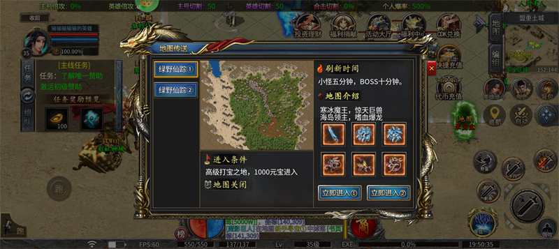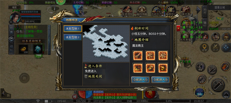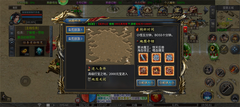 BOSS名称:寒冰魔王、惊天巨兽、海岛领主、嗜血爆龙