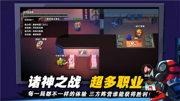 游戏中船员可以通过完成所有的任务获得游戏的胜利,每个人的任务内容略有区别,有的任务也需要合作进行,可以根据地图上的指示,前往即可,任务的形式都很简单,就是一些点点点的操作,有一点点英文基础即可。需要注意的是尽量避免单独行动,这样被KO了都没有目击证人。