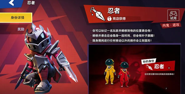 相比较女巫的话,击杀的速度会更快一些,能够直接提前标记角色,然后瞬移过去袭击,同时在袭击的过程中会进入到隐身状态,如果是在熄灯的情况下进行的袭击,那么该效果无疑是最适合的了,基本上被忍者击杀的玩家都噶的莫名其妙的,同时也可以借助隐身来一次栽赃嫁祸。