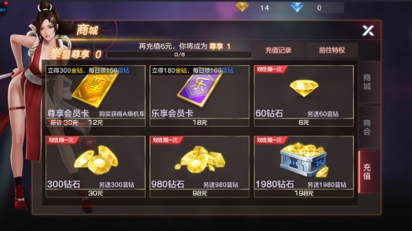 三、当格斗家开放商城功能时,还可以直接进入商城下的充值界面,购买不同额度的钻石礼包。