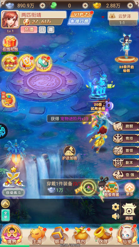 1、玩家开局就能领取价值88888的新手大礼包,免费VIP、自动挂机战斗等丰富好礼。