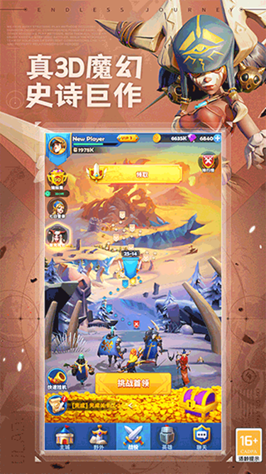 3. 轻松放置玩法:无需繁重日常任务和复杂副本,享受梦幻世界和愉快冒险。游戏不肝不氪,自由领略魔幻魅力。