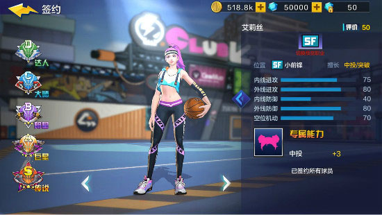 作为《热血街篮》初始球员中唯二的女球员,艾莉丝在球场上担任小前锋(SF)的位置。她不仅拥有很强的专业属性,还具备超高的个人魅力,颜值和身材同时在线,也让她成为众多玩家的不二首选。