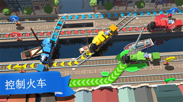 2、滑动你的手指,调度和控制行车轨道,管理火车行驶路线确保每个小火车都可以安全到达目的地。