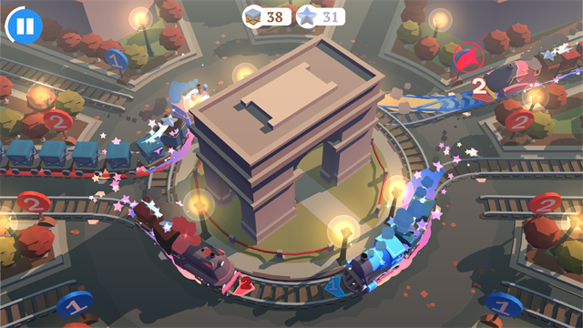 听上去很容易,其实操作起来可真是要费点心思了。刚开始第一关的时候你会觉得好简单啊,然后下一秒就可能打脸,接踵而至的火车瞬间让你措手不及,太慢调度还会扣掉列车上的小星星,通过了一关不算什么,每关都有三个难度可以选择,星星积攒到一定数量才能开启新的难度。