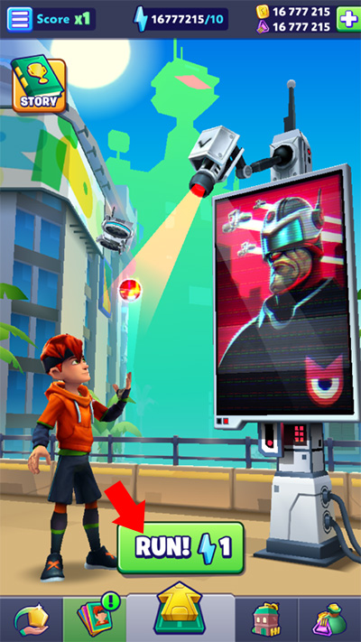 4、角色升级完毕后,点击正中间的run!即可开始游戏