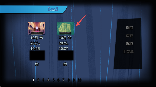 4、进入选项板块后,点击加载,选择刚刚保存好的存档即可