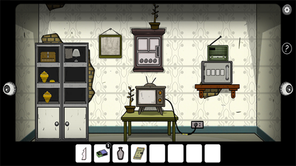 1、在初始场景左下角花盆处拿到【树叶】和【把手】