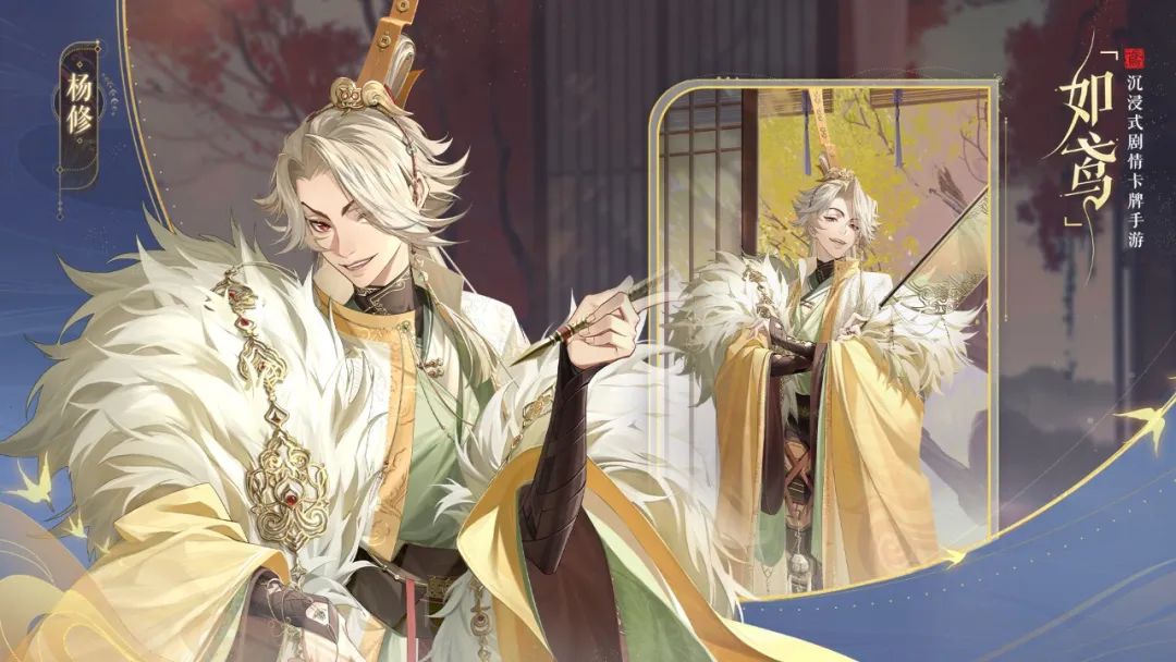 父亲位列三公,母亲是袁氏的贵女,有几分凭借身世的倨傲。平日心直口快,才思敏捷,说话过于直白而为人所不喜。现在已掌握杨家的全部产业,正在等待朝廷的正式任命。又及,特别在意自己的衣冠——谁都没见过他摘下头冠的样子。
