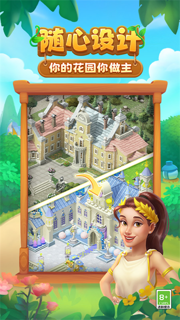 1、玩法丰富独特:融合闯关消除、花园修复与装扮,并伴随沉浸式剧情体验。