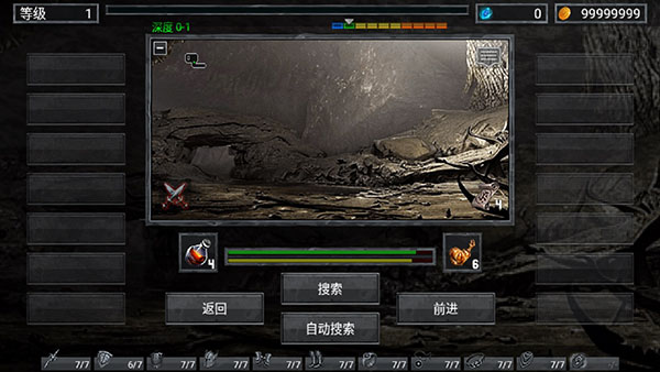 4、消灭怪物后,记得搜索一下洞穴,会有意想不到的装备!选择自动搜索,对局结束后就会自动搜索洞穴啦!