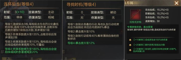 专属:专属解锁,技攻额外增加段数,提高击杀的可能性;