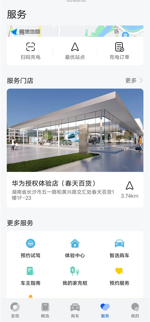 4、服务版块可以查询周围的充电站、服务门店;
