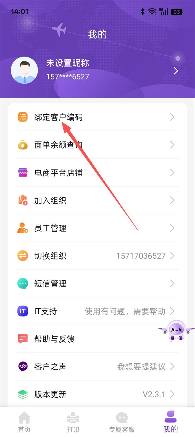 3、没有客户编码的需要先申请,已有的可以直接绑定