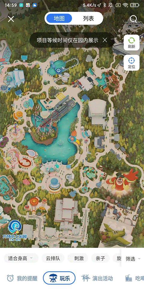 6、项目等候时间:实时查看各项目排队情况,灵活调整游玩顺序。