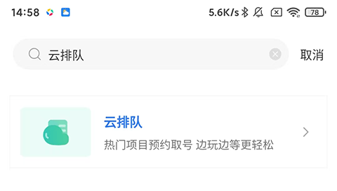 2、在搜索款输入云排队,点击进入;