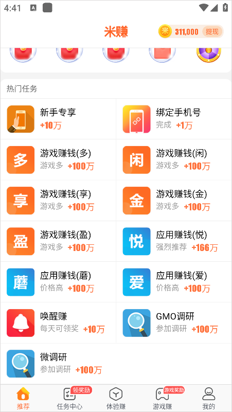 1、玩应用:手机乐趣源自各类应用,米赚为您精选推荐有趣应用,让您在畅快玩乐的同时还能赚取丰厚收益。