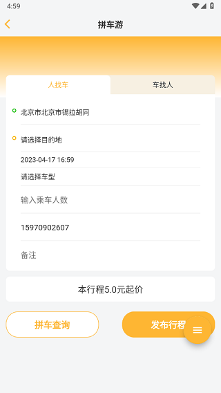 用户可以发布拼车订单,系统自动匹配,满足出行需求。