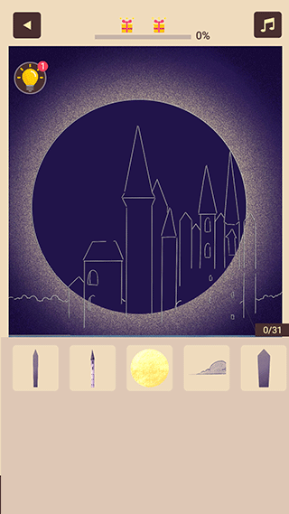 3、我们需要利用下方的小图片镶嵌到图画中来完成这副画。